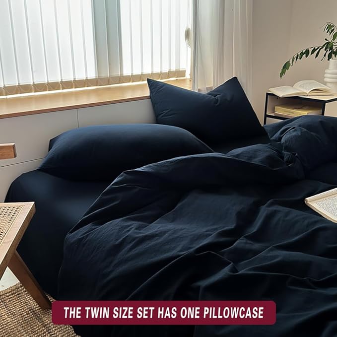 FACE TWO FACE Bedding Duvet Cover Set100% Washed Cotton Duvet Cover Linen Like Textured Breathable Durable Soft Comfy (Twin, Tibetan Blue)