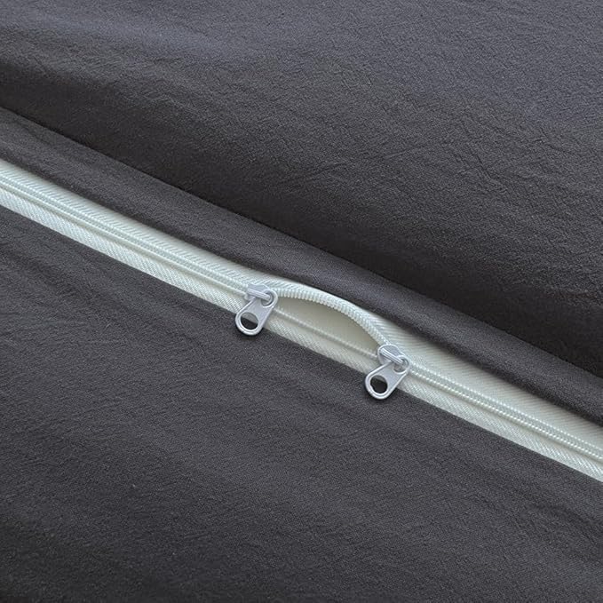 FACE TWO FACE Bedding Duvet Cover Set100% Washed Cotton Duvet Cover Linen Like Textured Breathable Durable Soft Comfy (California King, Volcanic Black)