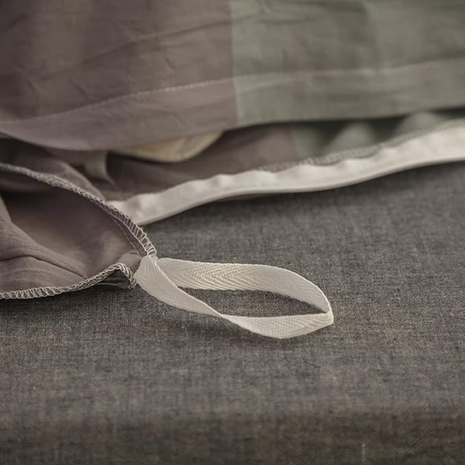FACE TWO FACE Bedding Duvet Cover Set100% Washed Cotton Duvet Cover Linen Like Textured Breathable Durable Soft Comfy (Full, Light Green Grid)