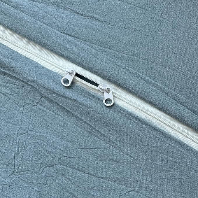 FACE TWO FACE Bedding Duvet Cover Set100% Washed Cotton Duvet Cover Linen Like Textured Breathable Durable Soft Comfy (Full, Deep Gray Blue)