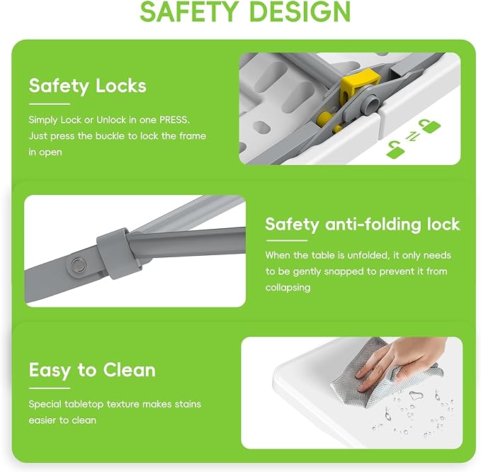 - Portable & Convenient: With a compact, foldable design, this plastic folding table and bench set can be easily transported and stored, making it an ideal choice for on-the-go use and storage