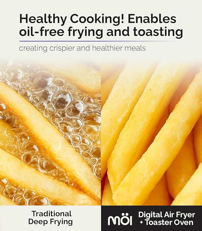 - 𝗛𝗘𝗔𝗟𝗧𝗛𝗜𝗘𝗥 𝗙𝗥𝗬𝗜𝗡𝗚 𝗠𝗘𝗧𝗛𝗢𝗗: Enjoy crispy results with little to no oil using this air fryer toaster oven. It delivers healthier meals without sacrificing flavor, making it a must-have for those wanting a versatile oven air fryer that supports clean eating habits.