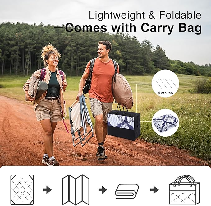 - Lightweight & Portable: Easy to fold and carry, this camping rug is your go-to for outdoor adventures. Ideal for camping trips, gatherings, or sports events, it ensures comfort and style wherever you go.