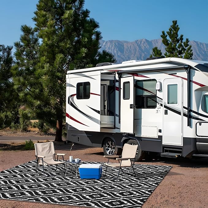 - Reversible & Versatile: Featuring a modern geometric pattern on both sides, this indoor outdoor rug is designed for versatility. Simply flip it over for an instant style refresh. Perfect for patios, porches, RV campsites, and more, this camping rug adapts effortlessly to any setting.