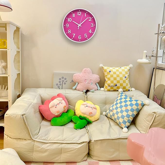 HZDHCLH Wall Clocks Battery Operated 12 inch Silent Non Ticking Modern Wall Clock for Living Room Bedroom Kitchen Office Decor (Rose red)