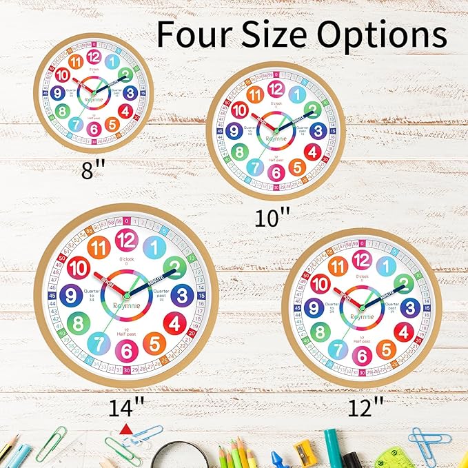 - 1、【Clear & Easy to Teach for Kids】: This kids wall clock has all the information you need to teach time - minutes hands and quarters are labelled making it easy for kids to understand