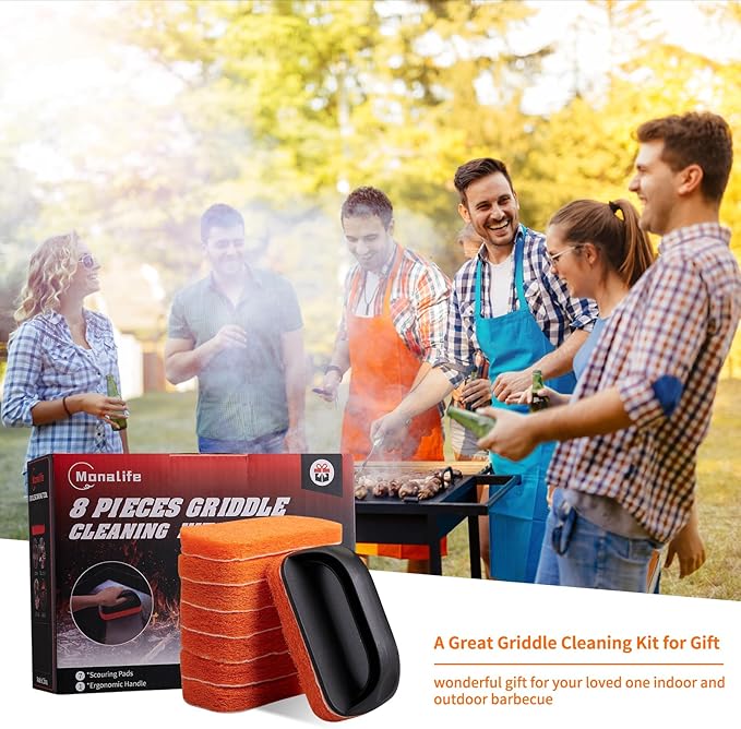 - 【Griddle Cleaning Kit】This grill cleaner include 7 scouring pads and 1 handle which makes your cleaning job easily. A must have grill cleaning kit for grilling enthusiasts.