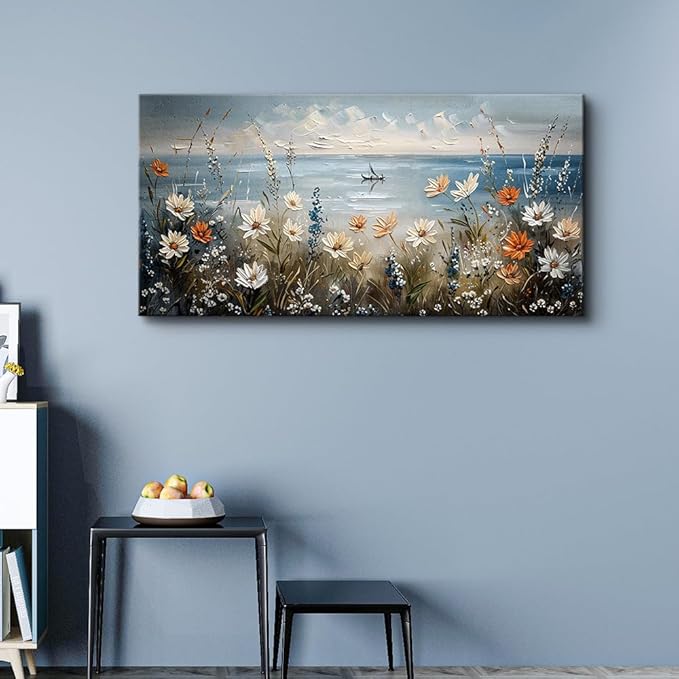 MHARTK66 Canvas Wall Art For Living Room Wall Decor For Bedroom Office Decoration Blue Ocean Paintings Flowers Landscape Wall Pictures Artwork Modern Aesthetic Room Home Decor Ready To Hang Posters
