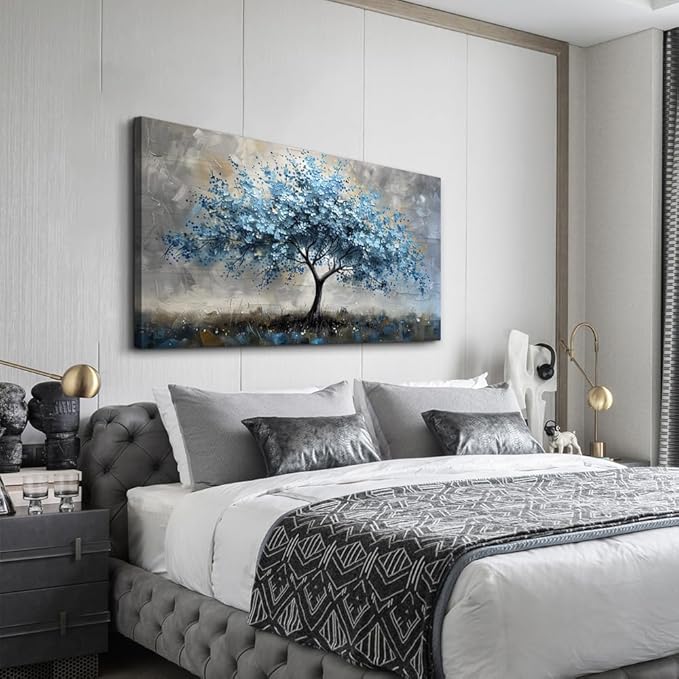 MHARTK66 Farmhouse Wall Art For Living Room Canvas Wall Decor For Bedroom Blue Tree Landscape Wall Pictures Artwork Large Stretched and Framed Canvas Paintings Ready to Hang for Office Home Decor