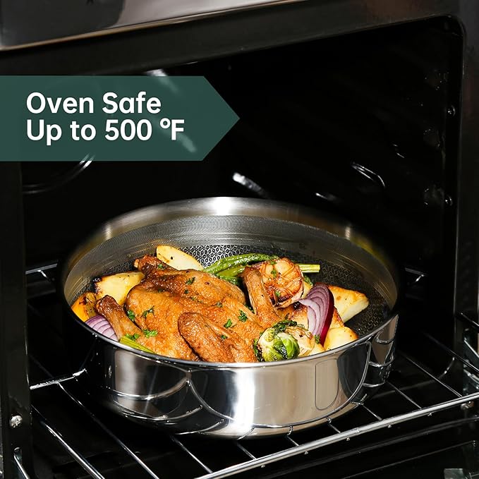 - Compatiable with all stovetop:it offer the ultimate in versatility in cooking when it comes to frying, sautéing, and simmering.You can use ROYDX cookware on any home cooktop or stovetop, including induction(Take off the handle when cooking),dishwasher-safe, and oven-safe up to 500°F).