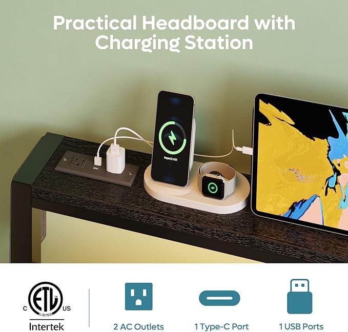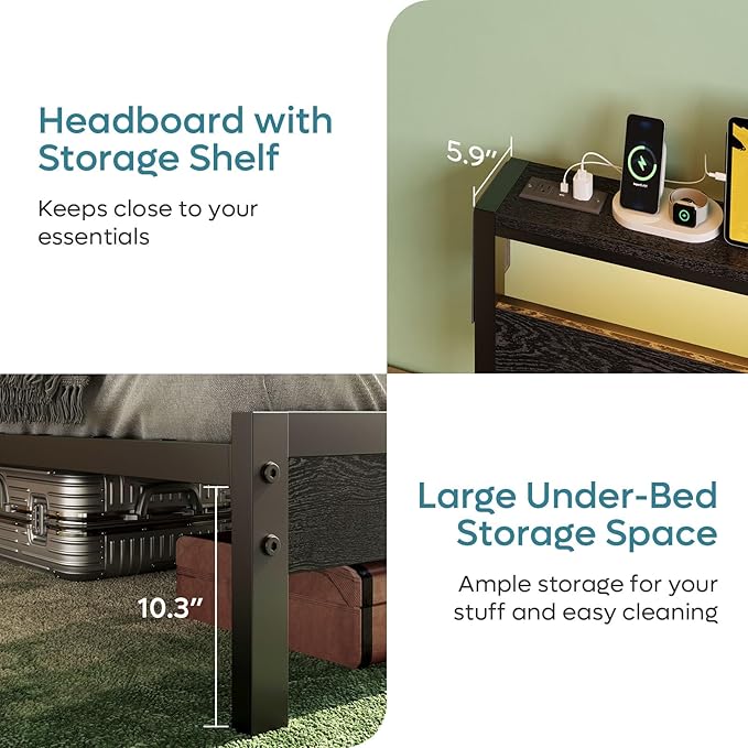 - Special Feature : Convenient Charging Station & LED Light, Headboard Storage Shelf, High Headboard Design, Prevent Mattress Slippage, Sturdy and Stable Convenient Charging Station & LED Light, Headboard Storage Shelf, High Headboard Design, Prevent Mattress Slippage, Sturdy and Stable