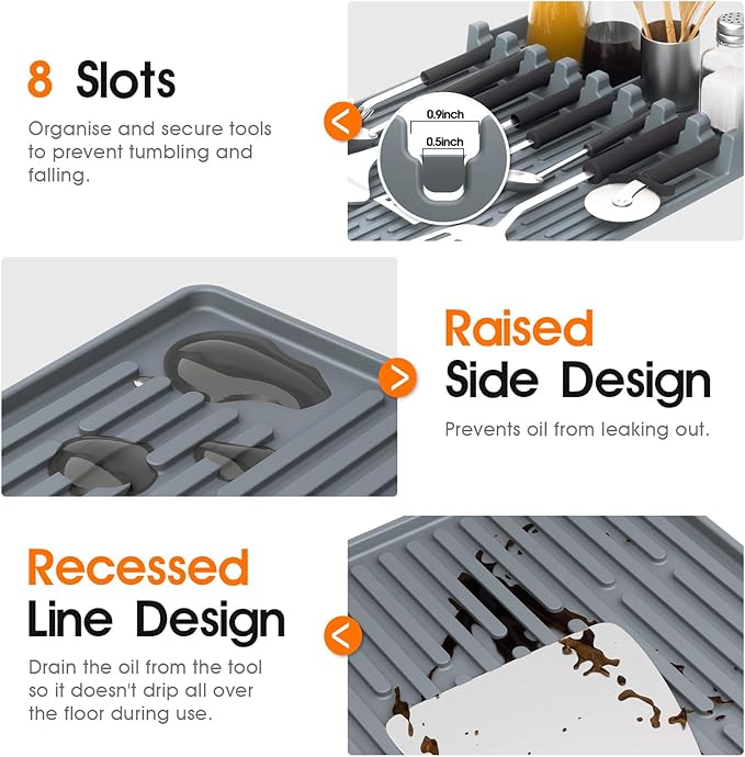 - No More Messy Surfaces: This silicone spatula mat features multiple grooves designed specifically to hold the handles of your BBQ tools, preventing them from rolling around or falling off. It protects your grill surface from scratches and grease, keeping your grilling area tidy