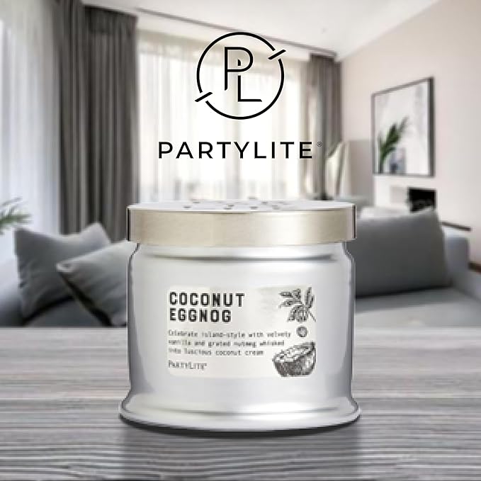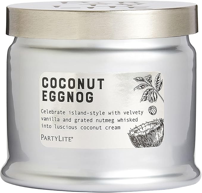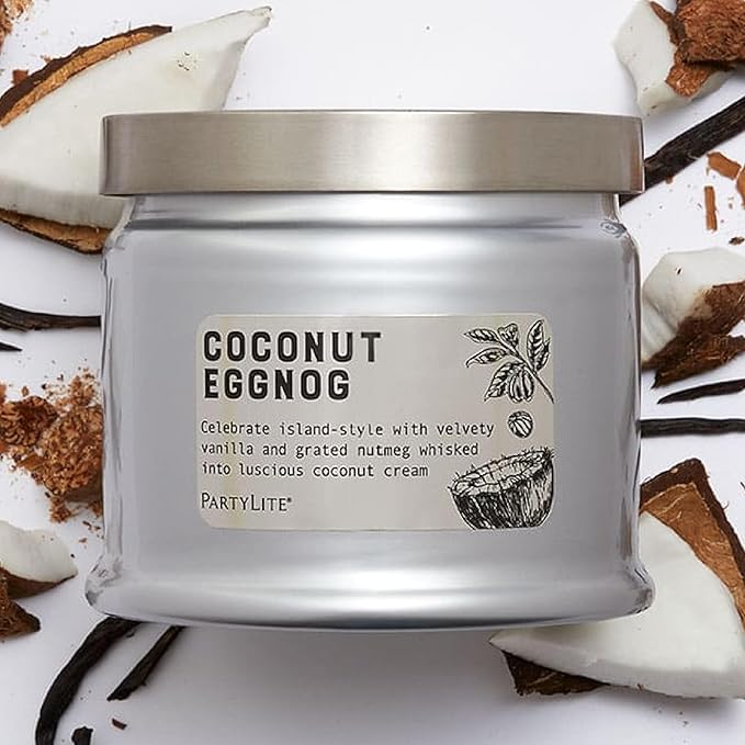 PartyLite 3-Wick Jar Candle, Highly Fragranced Clean Burning Glass Candle, 25-45 Hours Burn Time (Coconut Eggnog)