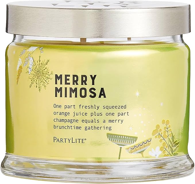 PartyLite 3-Wick Jar Candle, Highly Fragranced Clean Burning Glass Candle, 25-45 Hours Burn Time (Merry Mimosa)