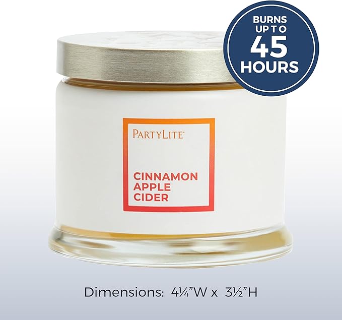 PartyLite 3-Wick Jar Candle, Highly Fragranced Clean Burning Glass Candle, 25-45 Hours Burn Time (Cinnamon Apple Cider)