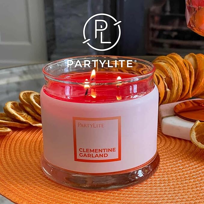 PartyLite 3-Wick Jar Candle, Highly Fragranced Clean Burning Glass Candle, 25-45 Hours Burn Time (Clementine Garland)