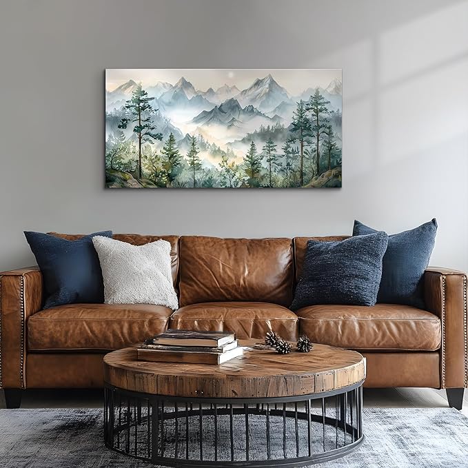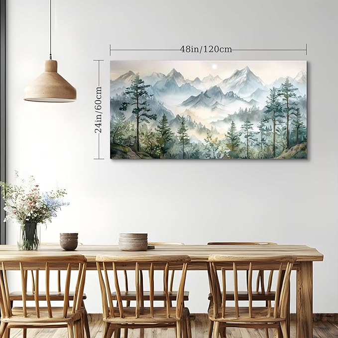 SERIMINO Large Canvas Wall Art for Living Room, Mountain Forest Landscape Canvas Prints Paintings, Nature Scenery Wall Decor, Green Modern Home Bedroom Bathroom Pictures Home Decor 24"X48"