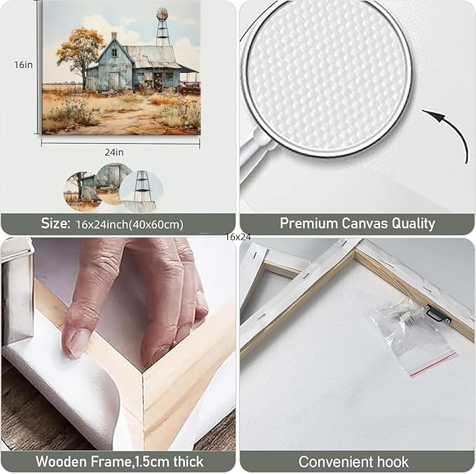 - Rustic Farmhouse Canvas Wall Art sizes: 16x24 Inches Unframed.Imaginative natural landscapes, beautiful images of rural fields, full of imagination, are the perfect addition to the room.