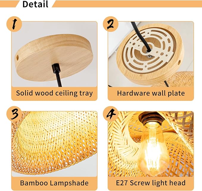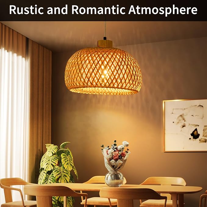- 【Easy Installation & Versatile Use】 This hardwired pendant light (no plug included) operates on AC 85-265V, 50-60HZ, with built-in short circuit and current protection for enhanced safety. The hand-woven bamboo design blends modern and vintage styles, creating a stunning focal point. Perfect for kitchen islands, dining rooms, living rooms, bedrooms, hallways, cafés, bars, farmhouses, Boho-themed parties, and even wedding décor, it brings a touch of elegance and charm to any space.
