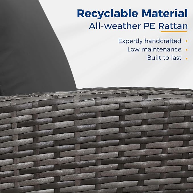 - 【Durable and Long-lasting Outdoor Furniture】Experience the durability and reliability of this 4 piece outdoor furniture. Crafted with premium PE rattan and a sturdy powder-coated steel frame, it is built to withstand any weather condition, ensuring years of outdoor enjoyment. Whether you have a balcony, lawn, garden, or poolside, this set is perfect for all outdoor spaces.