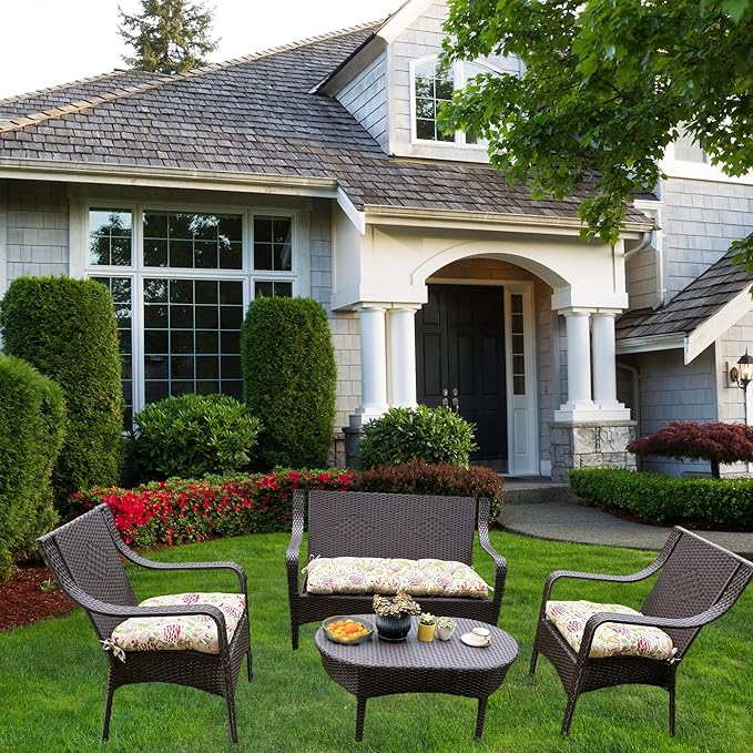 - Material Selection- Wicker replacement chair cushions with Ties for patio furniture is made of 100% polyester fabric and 100% polyester filling recyled environmentallly friendly materials, Fade-Resistant, water repellent for wicker rocking chair