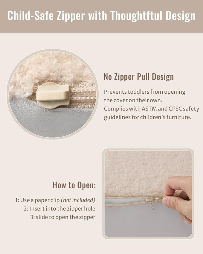 - Sturdy High Density Foam and Washable Cover: Every time your child sits down, it's like soaking in a cozy hug, surrounded by cushiony high-density memory foam and skin-friendly, soft teddy fleece. The cover zips off for easy machine washing