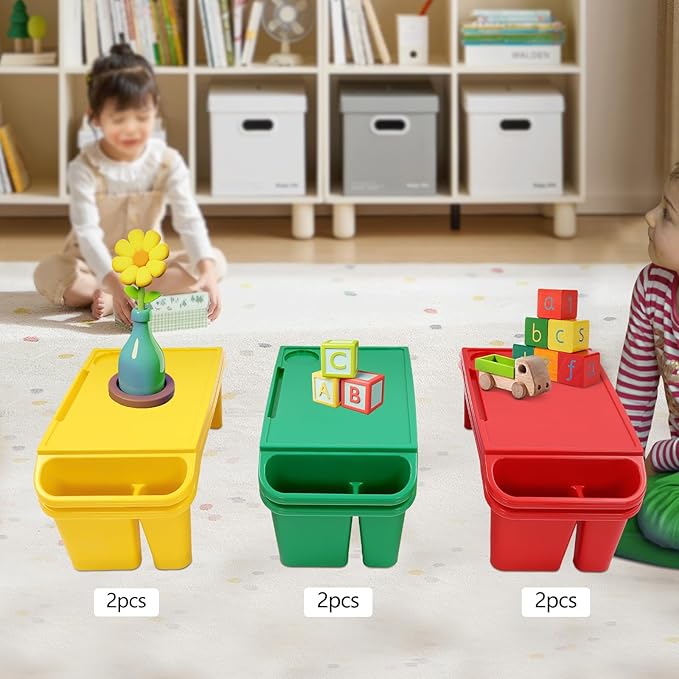 Set of 6 Kids Lap Desk Tray, Portable Activity Table, Plastic, Stackable for Drawing, Writing, Eating, Classroom, 19.69" L x 9.84" W x 7.09" H (Red, Green, Yellow)