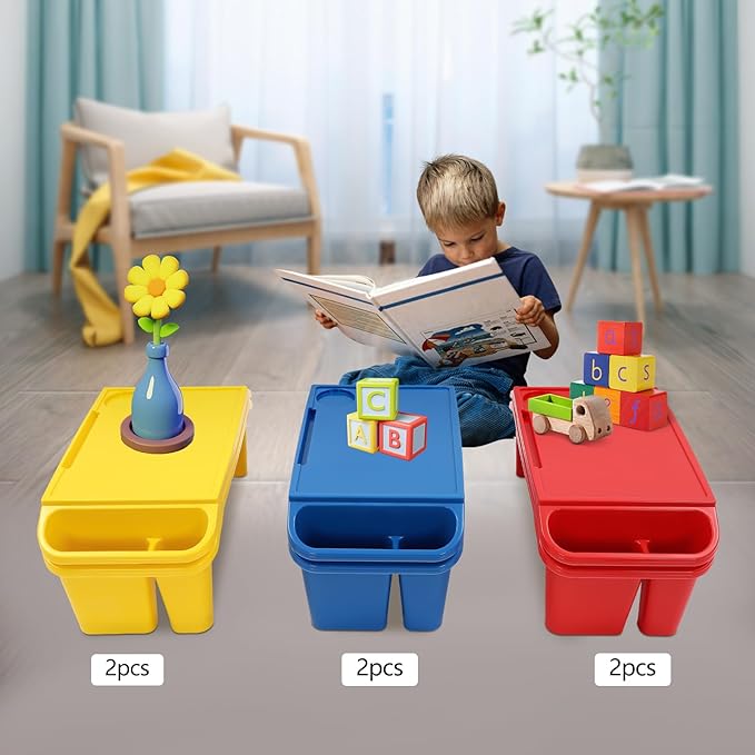 Set of 6 Kids Lap Desk Tray, Portable Activity Table, Plastic, Stackable for Drawing, Writing, Eating, Classroom, 19.69" L x 9.84" W x 7.09" H (Red, Blue, Yellow)