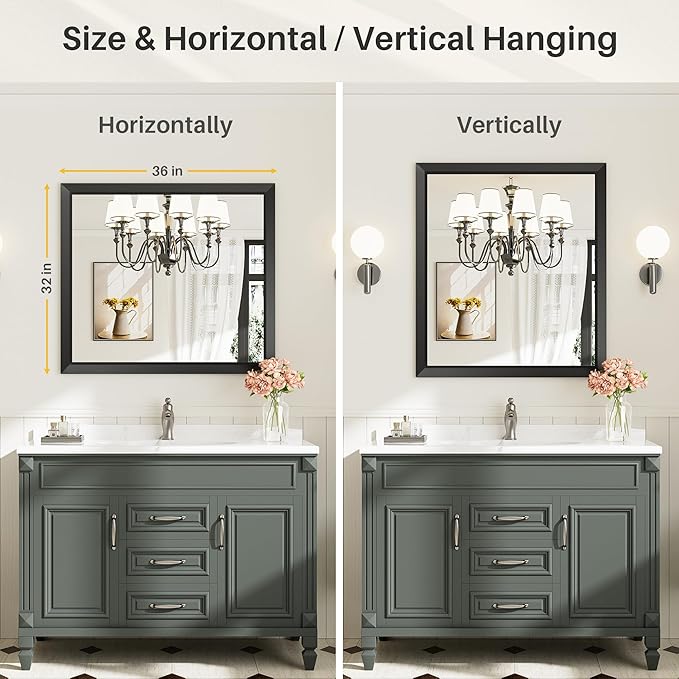 - 𝐒𝐞𝐜𝐮𝐫𝐞 𝐏𝐚𝐜𝐤𝐚𝐠𝐢𝐧𝐠: The framed mirror's package protects the mirror completely and securely designed with customized thick foam with all-round protection in carton box. It passed drop and impact test to ensure that you receive your mirror in perfect condition.