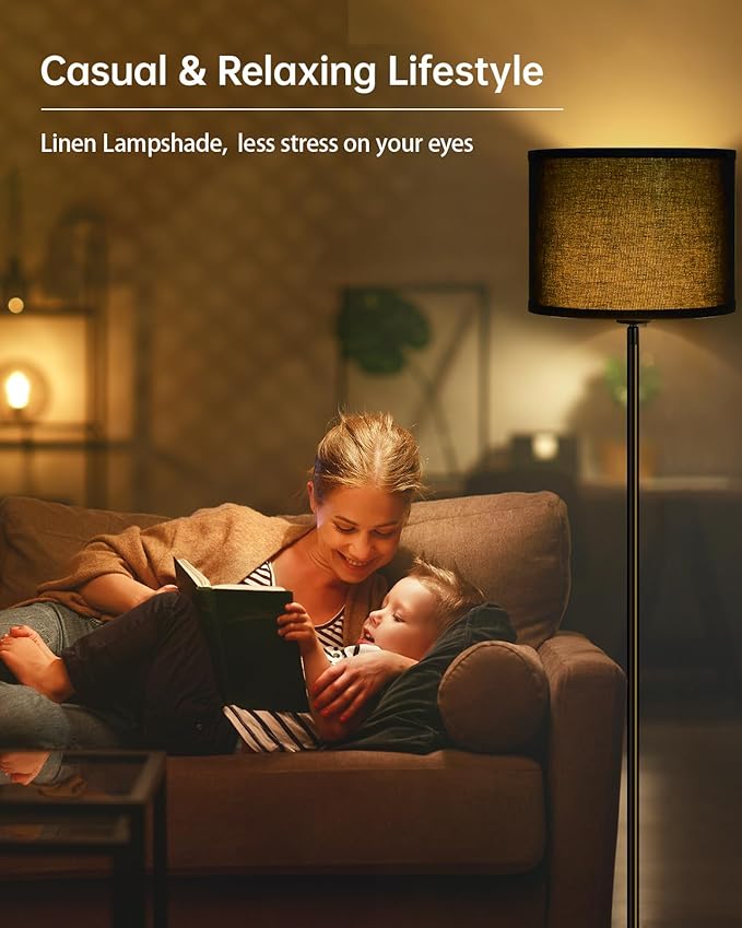- 💡【Foot Switch and Compatible with smart devices】The LED floor lamp for the bedrooms is controlled by a foot pedal, which is easy to turn on/off when you lay on the sofa or bed, and gives the dimmable lamp with shade simple outlook; To keep path with smart lifestyle, you can plug this standing lamp in the smart device(not included), add it to your home appliances group, and easily controlled it by your phone; intelligent design help you enjoy easier life and home automation