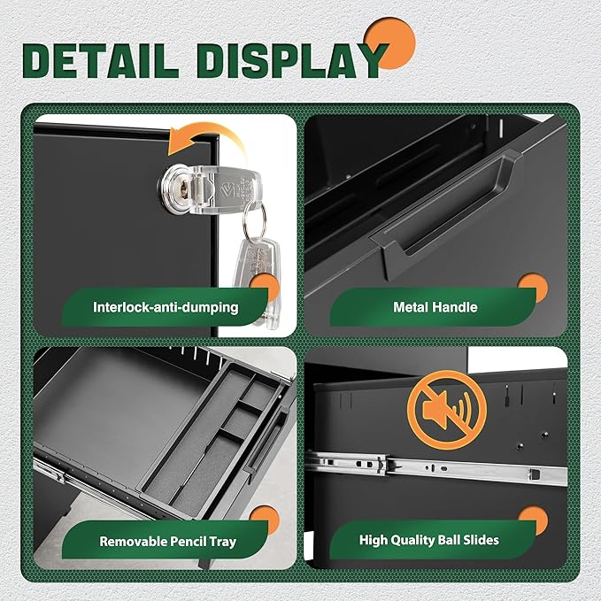 - Privacy Security:1 lock secures all three drawers, comes with 2 keys for your locking ,Anti-tilt mechanism allows only one drawer to open at the same time to prevent the cabinet from tipping forward