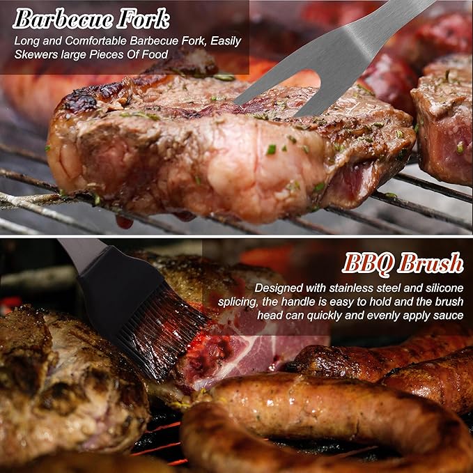 - Gift-for BBQ Lovers: Whether you're grilling indoors or outdoors, our grilling accessories are designed to work with all grill types, to ensure a different experience for you at the barbecue. The grill accessories makes it the first choice for gifting to loved ones or friends during various holidays and is a must-have for any cooking enthusiast