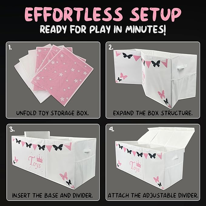 - 🏠 Multi-Purpose & Stylish Design – More than just a toy chest! The Mini Hide storage organizer is ideal for storing clothes, blankets, and even office supplies. Its charming design with butterfly accents adds a playful touch to any room decor, making it suitable for living rooms, nurseries, and playrooms alike.