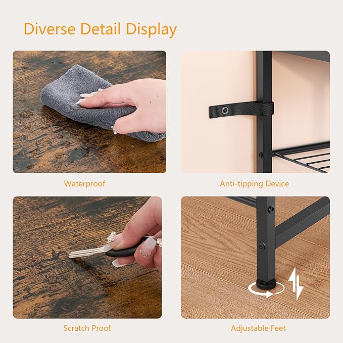 - Robust and Durable: The shoe organizer for the closet is constructed of a 15 mm P2 grade chipboard table and metal frames with waterproof coating, leaving it water-resistant and long-lasting. You can put your rain boots here at ease. Each metal shelf can bear up to 22 lbs, while the top shelf holds 66 lbs. Adjustable feet keeps the shoe rack balanced on uneven floors