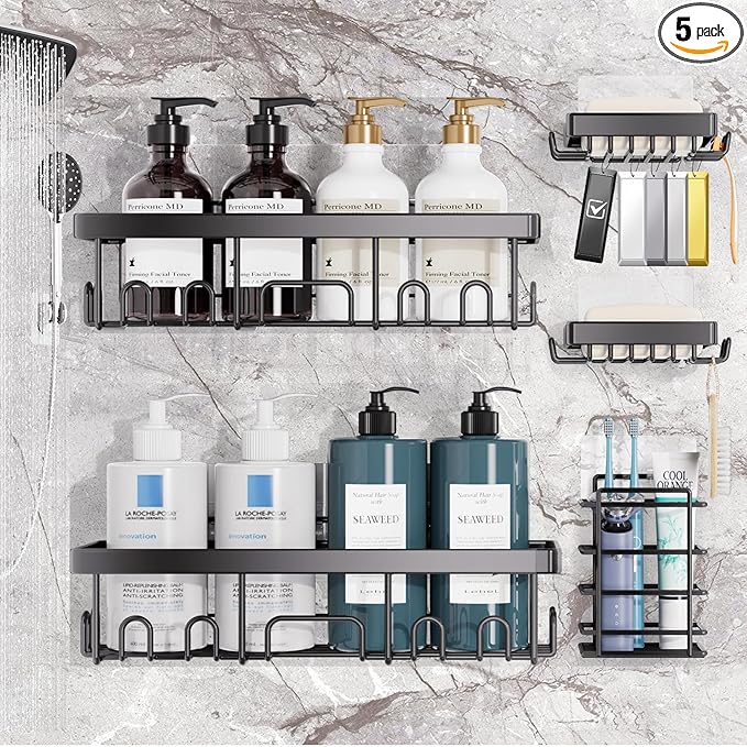 - Comprehensive Storage Solution: This 5-piece set includes medium and large caddies with a soap dish and toothbrush holder to organize shower essentials. Keep your shampoos, soaps, razors, and more neatly stored in one place for easy access.