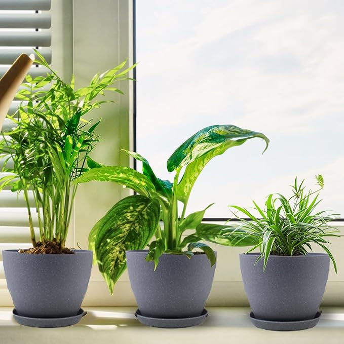 Plant Pots- 8.5/7.5/6.5/6 Inches 4 Pack Plastic Plant Pots,Indoor Decor Flower Pots with Drainage Holes and Tray,Home Decor Planters for Indoor Plants Cactus, Succulents Pot
