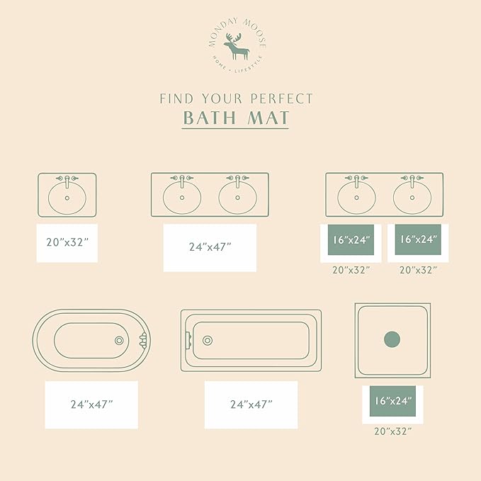 MONDAY MOOSE Bath Mat with Scalloped Wavy Ripple Design, Microfiber Absorbent Non Slip Tufted Rug for Floor, Shower or Kitchen (16x24 inch, Sage)