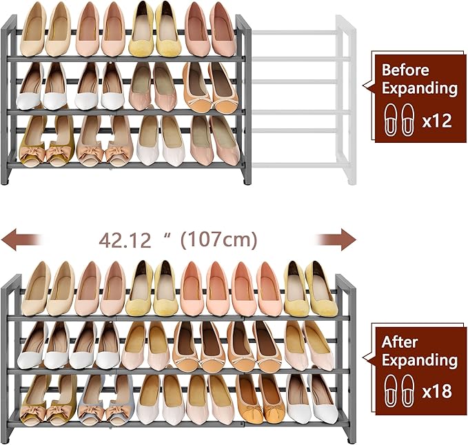 - Expandable Shoe Rack: The shoe rack can be retractable from 29.3 inches to 41.5 inches to accommodate different space requirements, and hold up to 18 pairs of shoes