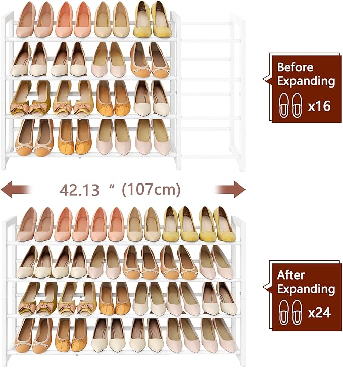 - Expandable Shoe Rack: The shoe rack can be retractable from 29.3 inches to 41.5 inches to accommodate different space requirements, and hold up to 24 pairs of shoes