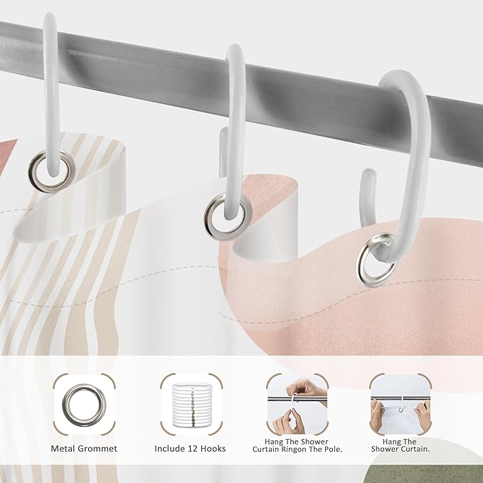 - 【Premium Materials】This pink green boho shower curtain is made of 100% environment-friendly polyester fabric, water resistant, quickly dry, odorless, safety and fadeless.