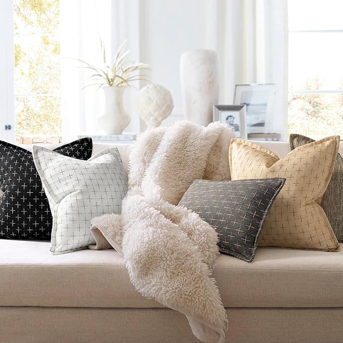 - 1.【Premium Polyester Material】: The couch pillows are made from thick soft polyester, which is resistant to wrinkles and stretching. Our decorative pillow cover offers a comfortable and supersoft feel, crafted textures, and unique patterns creating a cozy and warm atmosphere in your living room.