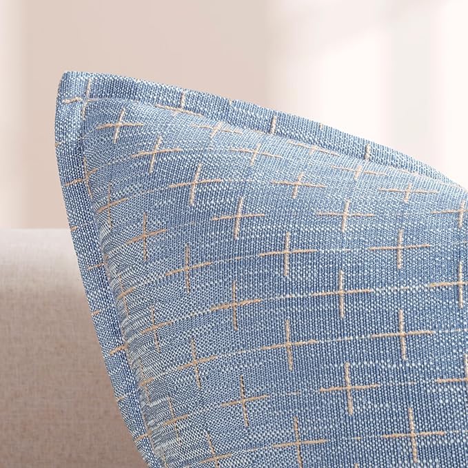 - 2.【Design with Flange Edges】This elegant pillow cover is designed with a flange at the edges. All fabric edges are meticulously sewn to prevent fraying and ensure lasting durability. The combination of the rich yarn-dyed jacquard fabric and the classic edge detail adds a sophisticated and refined touch to your home decor.