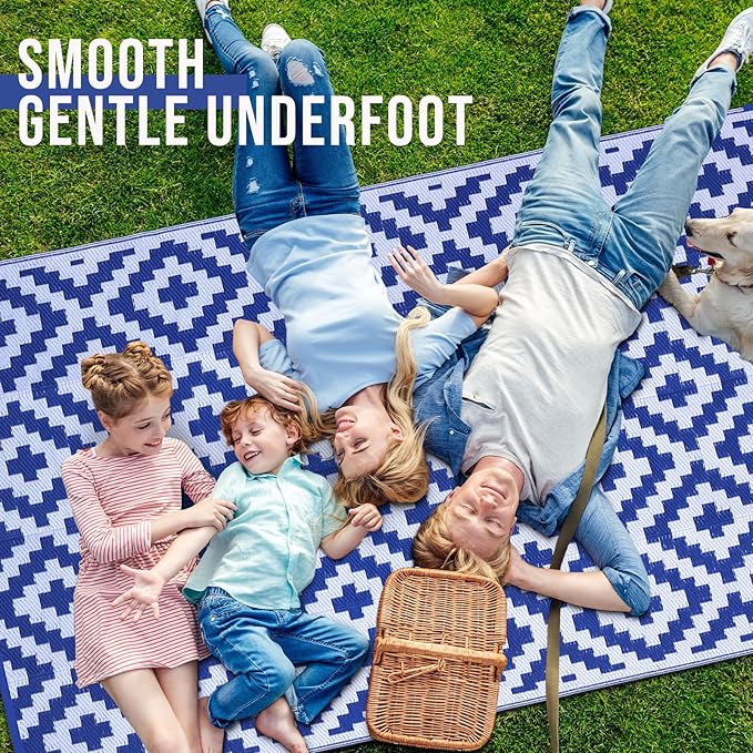 - Smooth & Gentle Underfoot: The woven plastic straw construction ensures a smooth, soft surface underfoot, making it perfect for barefoot relaxation. Whether you're lounging on the deck, sitting by the campfire, or enjoying your backyard, this outdoor area rug offers comfort and style for any occasion.