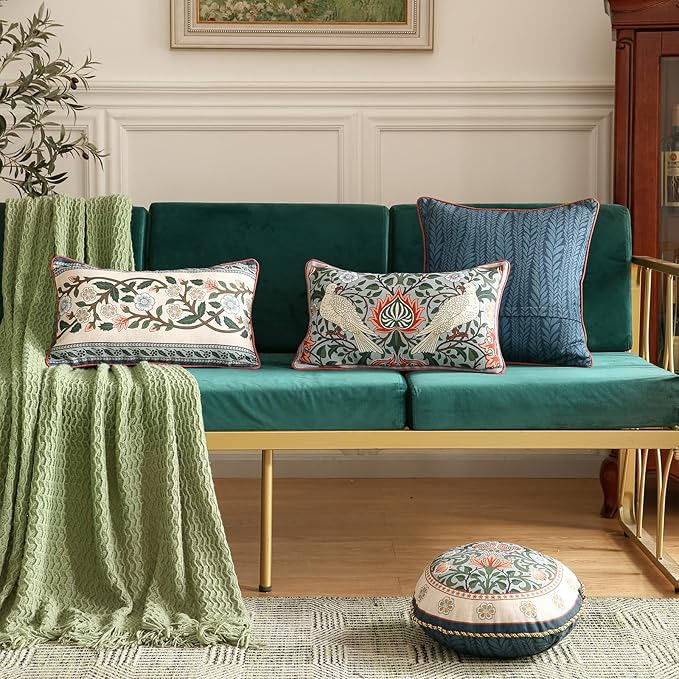 Design Lumbar Retro Elegant Linen Throw Pillow Covers 12"x20" Pack of 2, Blue Gray Floral Vine Pattern Cushion Covers Decor Rectangle Pillowcases for Bed,Living Room,Outdoor,Car