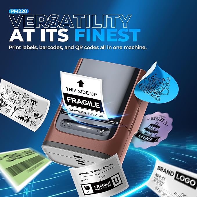 - Portable- PM220 label maker machine with tape compatible with smartphone & PC. Easily connect label printer to your smartphone in just 5 seconds for fast and convenient printing, label printer achieves convenient, smooth & fasts printing. Mini compact design, you can bring this portable label maker machine with tape to anywhere.(Note: charging adapter not included, not suitable for fast charging adapter.)