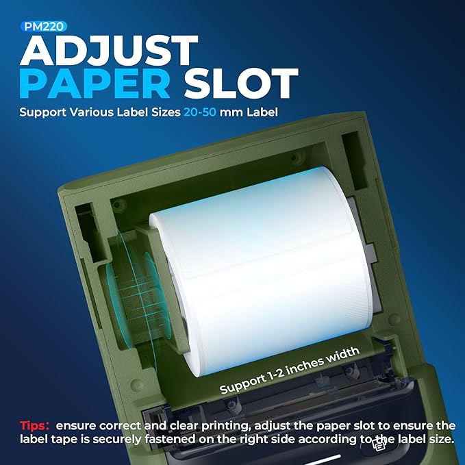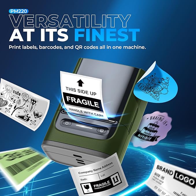- Powerful APP- The PM220 label maker machine with tape comes with label templates and can set up your own templates. Please do not tear or destruct the green sticker on the back of the label strip, otherwise it will affect the printing effect. This label printer allows you to customize and format labels, supporting various features such as QR codes, barcode labels, tables, materials, time, figures, text, icons. This label maker machine with tape APP included more than 90 +Fonts, 14+ Languages, 450+ Materials