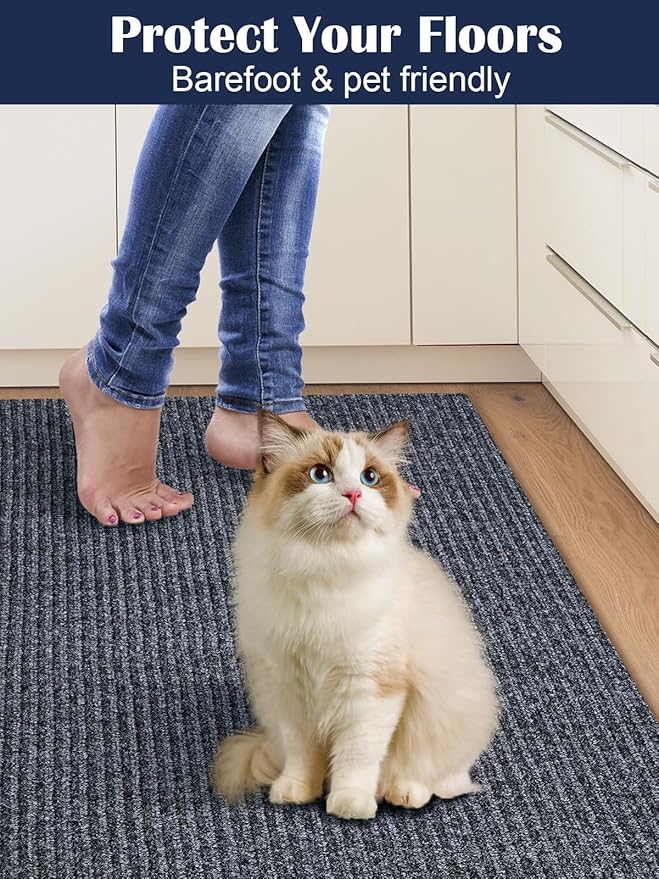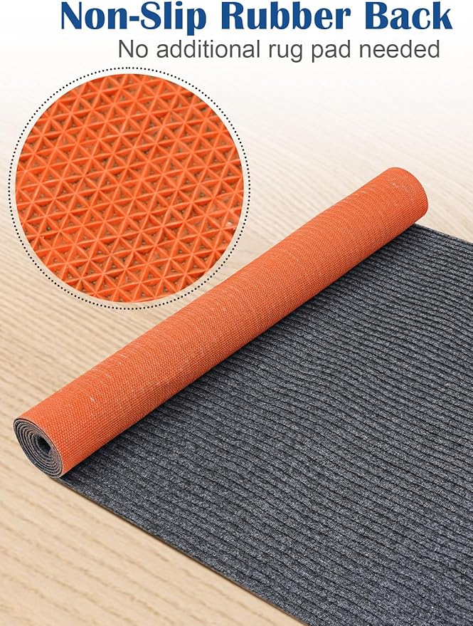 - 【Hight Quality Indoor & Outdoor Runner Rug】 Socomf carpet runner backed quality-crafted of 450 GSM surface and 480GSM TPE rubber coating back, non slip and low-profile pile (0.2 inch thickness) of this aisle rugs is comfortable under your feet without adding any bulks or snagging under doors, soft and durable for long lasting, a low-maintenance washable runner rugs, and the breathable material will not scratch your floor, a well-made floor mats, suitable for indoor/outdoor of entryway, hallway, garage, balcony, kitchen, deck and porch, both pets and children will love it, a well made grey rugs