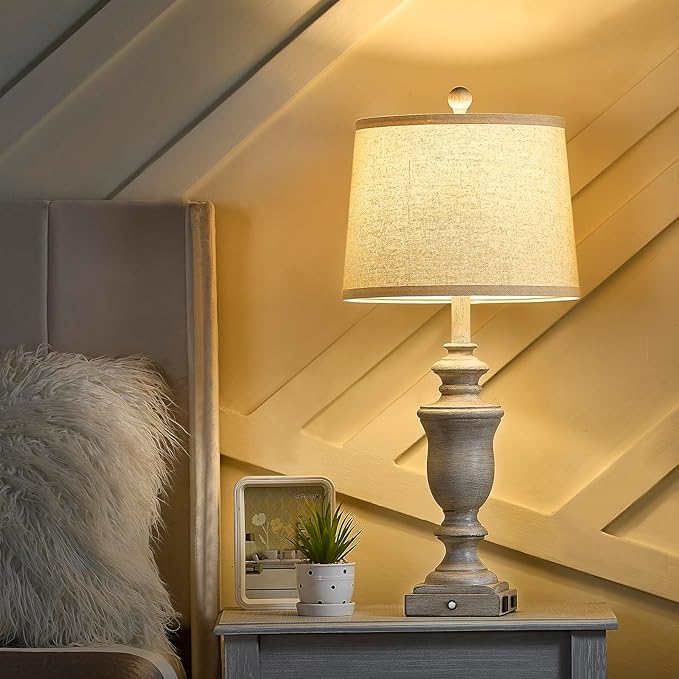 - 【Retro Elegant Design】 Room lamps for bedroom with its vintage resin body and linen shade, brings a touch of classic nostalgia to your living space, showcasing your refined taste. It can perfectly blend into any corner of your home, whether it's the bedroom, cottage, living room, study, office, or any other space (Note: The lamps for niaghtstand requires self-assembly)