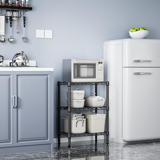 750 lbs 3 Tier Shelf Metal Storage Shelves Wire Rack Closet Organizers with PP Board for Garage Kitchen Bathroom Laundry Black 11.8" D x 21.7" W x 28.6" H