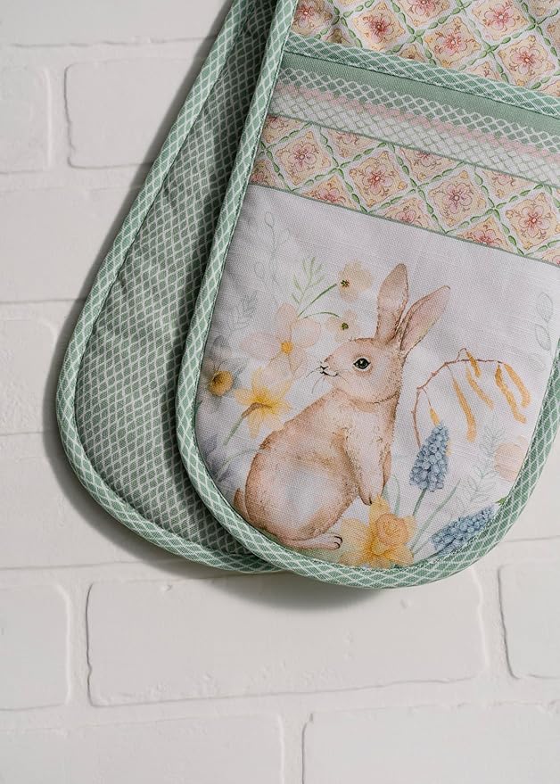 Maison d' Hermine Double Oven Mitts 100% Cotton 7"x35" Double Oven Mitt Heat Resistant BBQ Cooking Gloves with Loop, Baking, Grilling, Home, Kitchen, Handling Hot Pans Spring Summer (Easter Dew)